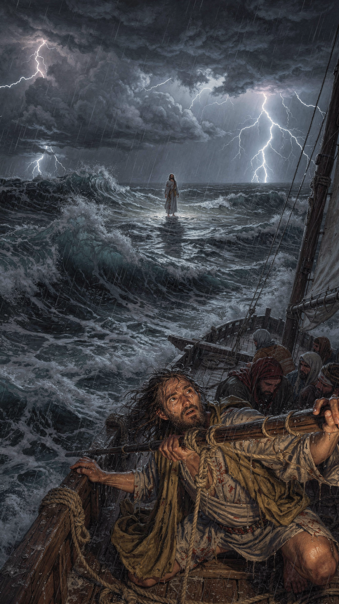 a deliberate echo of God’s dominion over chaos (Genesis 1, Psalm 77). Their fear isn’t just the storm—it’s that they don’t yet recognize Him in the middle of it.